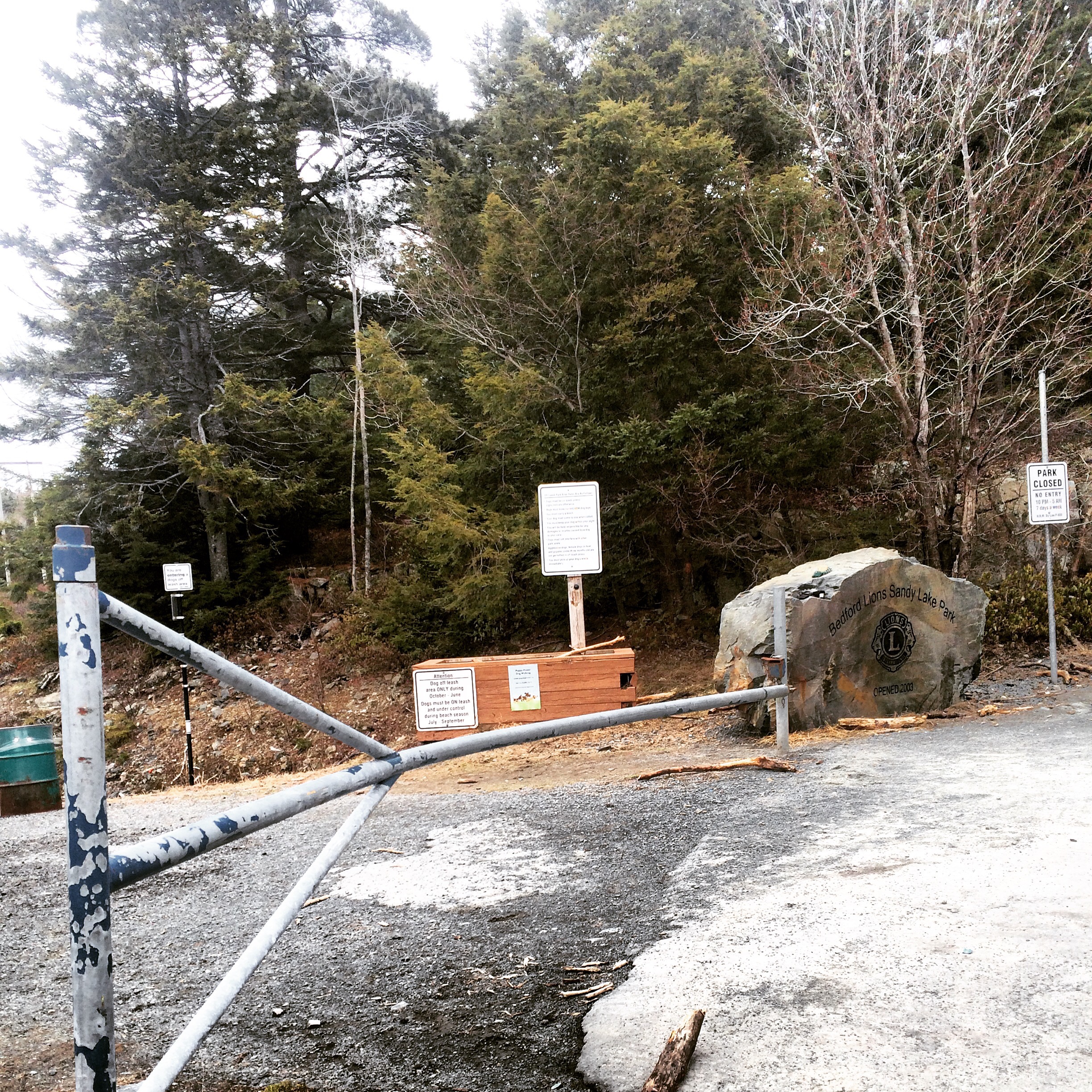 Sandy Lake Park has two different modes of operation. The first mode, the one we encountered, is the off-season mode. Running from October 1 to June 30, this is the more dog-friendly time of year. During this time of year, access to the main parking lot is blocked off by a gate. Park your car at the end of Smiths Road and go from there. The off-leash zone starts right away. So from the very beginning of your walk, you and your four-legged pal can enjoy off-leash time. Which is the best time.