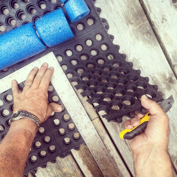 In order to maintain the use of our ladder, I elected to mount my anchor points on the foredeck – and added additional large noodles under the mats (two 3’x 3″), adding 1/2 of a short noodle to the top, as a visual cue for them to approach the boat.