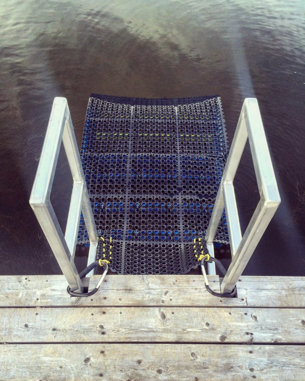 I just completed building this floating ramp (with modifications) for my five rescued companion – a number of whom are aged, infirm, and maimed (missing limbs).